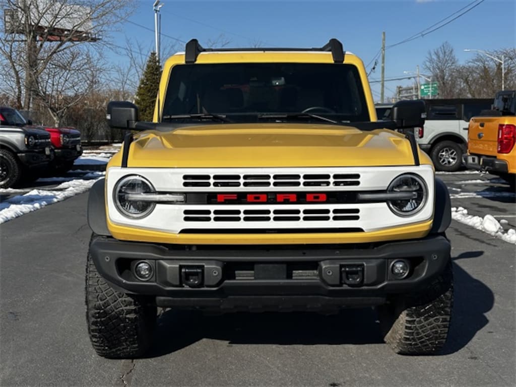 Recent Arrival! CARFAX One-Owner. Certified. 2024 Ford Bronco Heritage Limited Edition *Fully detailed*, *Fresh oil change*, Ford Gold Certified , Convertible HardTop, Equipment Group 664A Lux Package, Wheels: 17" Black High Gloss-Painted Aluminum, 10 Speakers, 4-Wheel Disc Brakes, 4.7 Axle Ratio, ABS brakes, Air Conditioning, AM/FM radio: SiriusXM with 360L, Auto High-beam Headlights, Auto-dimming Rear-View mirror, Automatic temperature control, Black Roof Rails w/Crossbars, Brake assist, Cargo Area Protector, Compass, Connected Navigation, Convertible roof lining, Delay-off headlights, Driver door bin, Driver vanity mirror, Dual front impact airbags, Dual front side impact airbags, Electronic Stability Control, Emergency communication system: 911 Assist, Engine Block Heater, Exterior Parking Camera Rear, Front anti-roll bar, Front Bucket Seats, Front Center Armrest, Front dual zone A/C, Front License Plate Bracket, Front reading lights, Front wheel independent suspension, Fully automatic headlights, Garage door transmitter, Glass rear window, Heated door mirrors, Heated front seats, Heated steering wheel, Illuminated entry, Integrated roll-over protection, Leather Shift Knob, Leather-Trimmed/Vinyl Heated Bucket Seats, Low tire pressure warning, Navigation system: Connected Navigation, Occupant sensing airbag, Outside temperature display, Overhead airbag, Overhead console, Panic alarm, Passenger door bin, Passenger vanity mirror, Power door mirrors, Power steering, Power windows, Radio data system, Radio: B&O Sound System by Bang & Olufsen, Rear window defroster, Rear window wiper, Remote keyless entry, Security system, SiriusXM Radio w/360L, Speed control, Split folding rear seat, Steering wheel mounted audio controls, SYNC 4, Tachometer, Telescoping steering wheel, Tilt steering wheel, Traction control, Trip computer, Turn signal indicator mirrors, Upgraded Carpet Floor Mats, Variably intermittent wipers, Voltmeter, Convertible HardTop, Equipment Group 664A Lux Package, Wheels: 17" Black High Gloss-Painted Aluminum.