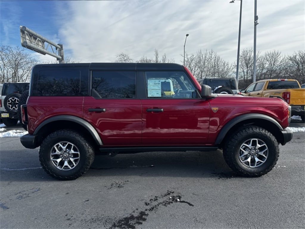 Recent Arrival! CARFAX One-Owner. Clean CARFAX. Certified. 2025 Ford Bronco Badlands *Fully detailed*, *Fresh oil change*, Ford Gold Certified , 2-Door Intelligent Access w/Lock/Unlock, Ambient Footwell Lighting, Connected Navigation, Dr & Pass Illuminated Sliding Visor Vanity Mirrors, Dual Smart Charging USB Ports, Dual-Zone Electronic Automatic Temperature Control, Equipment Group 332A Mid Package, Front Row Heated Seats, Power Outlet - Back Side of Center Floor Console, Rear Parking Sensors, Wheels: 17" Carbonized Gray-Painted Aluminum, 4-Wheel Disc Brakes, 4.7 Axle Ratio, 7 Speakers, ABS brakes, Air Conditioning, AM/FM radio: SiriusXM with 360L, AM/FM Stereo, Auto High-Beam Headlamps, Auto High-beam Headlights, Auto-dimming Rear-View mirror, BLIS Blind Spot Information System, Brake assist, Compass, Delay-off headlights, Driver door bin, Driver vanity mirror, Dual front impact airbags, Dual front side impact airbags, Electronic Stability Control, Emergency communication system: 911 Assist, Exterior Parking Camera Rear, Front anti-roll bar, Front Bucket Seats, Front Center Armrest, Front fog lights, Front License Plate Bracket, Front reading lights, Front wheel independent suspension, Fully automatic headlights, Hard Top Sound Deadening Headliner, Heated door mirrors, Heated front seats, Heated steering wheel, Illuminated entry, Integrated roll-over protection, Internet access capable: FordPass Connect, Lane-Keeping System, Leather Shift Knob, Low tire pressure warning, Marine Grade Vinyl Heated Bucket Seats, Occupant sensing airbag, Outside temperature display, Overhead airbag, Overhead console, Panic alarm, Passenger door bin, Passenger vanity mirror, Power door mirrors, Power steering, Power windows, Pre-Collision Assist w/Automatic Emergency Braking, Radio data system, Rear-View Camera, Rear-Window Defroster & Washer, Remote keyless entry, Security system, Shadow Black Painted Hard Top, SiriusXM w/360L, Speed control, Split folding rear seat, Steering wheel mounted audio controls, SYNC 4, Tachometer, Telescoping steering wheel, Tilt steering wheel, Traction control, Trip computer, Variably intermittent wipers, Voltmeter, 2-Door Intelligent Access w/Lock/Unlock, Ambient Footwell Lighting, Connected Navigation, Dr & Pass Illuminated Sliding Visor Vanity Mirrors, Dual Smart Charging USB Ports, Dual-Zone Electronic Automatic Temperature Control, Equipment Group 332A Mid Package, Front Row Heated Seats, Power Outlet - Back Side of Center Floor Console, Rear Parking Sensors, Wheels: 17" Carbonized Gray-Painted Aluminum.